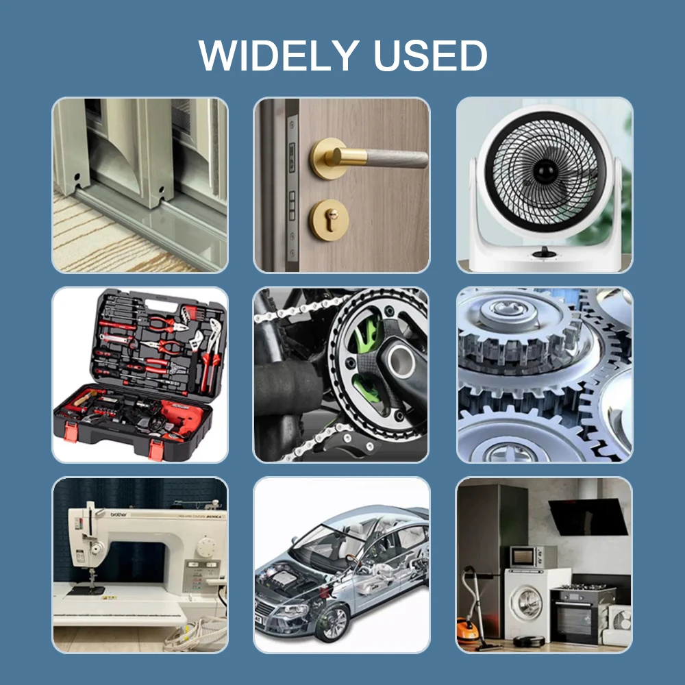 4. This product is not only suitable for bicycle gears and chains, but can also be widely used in door and window tracks, hardware tools, sewing machines, vehicle components, fan shafts, industrial gears, and household appliances.
