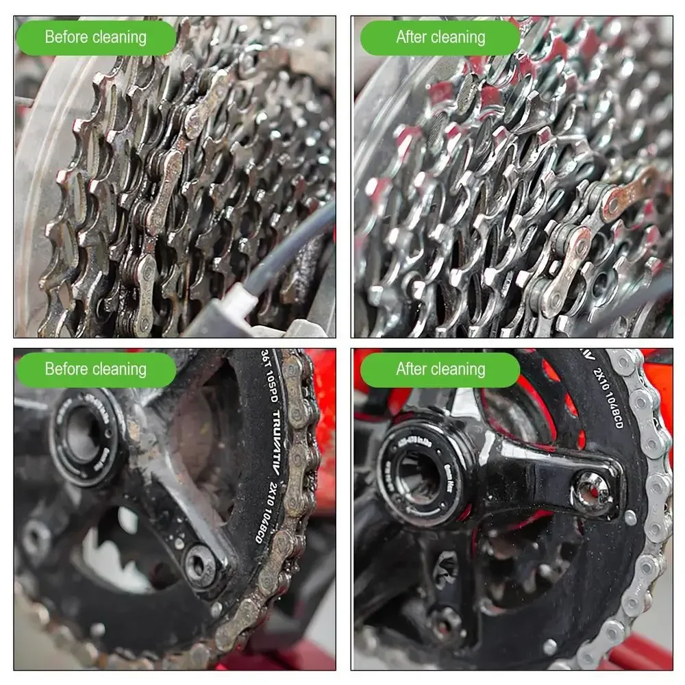 3.Multiple Functions: This bike chain cleaner can not only clean oil stains on your chain, but also protect metal surfaces, prevent rust and wear, and prolong the service life of bicycle chains and parts.